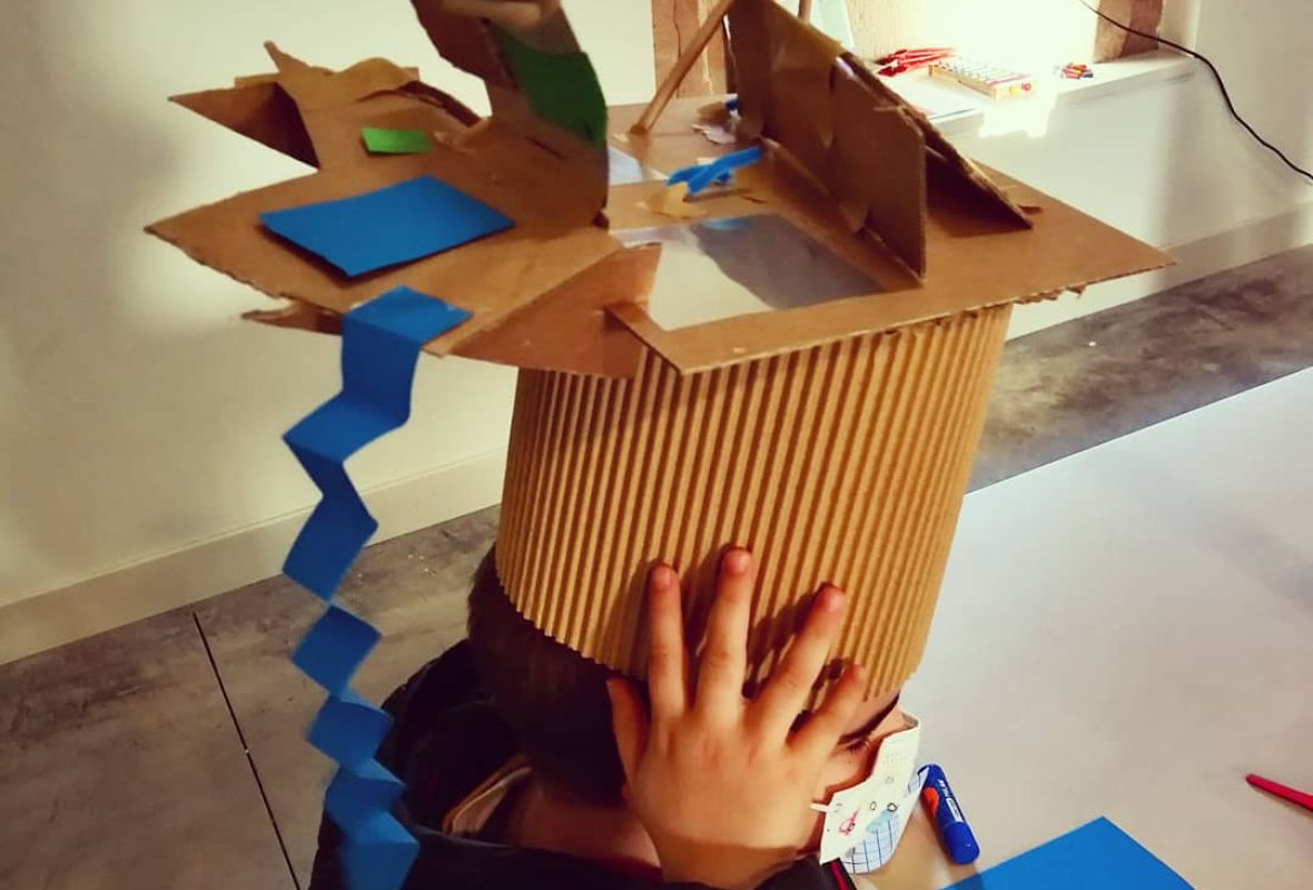 Using paper, cardboard and other lightweight materials, the activity invites participants to explore the relationship between architecture, design and creativity in a playful way, building a small piece of “portable architecture” to wear on their heads.