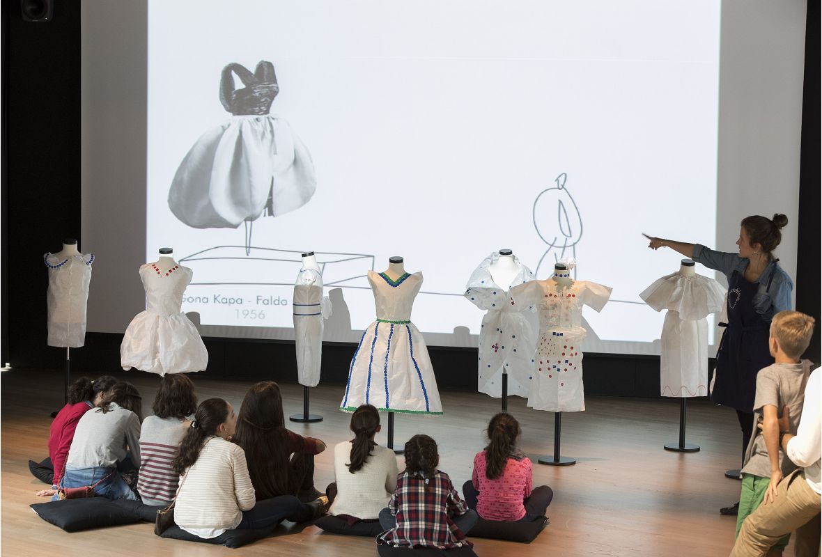 Tailer honen helburua Cristóbal Balenciagaren sorkarietan agerikoak diren forma- eta geometria-kontzeptuak transmititzea da. Bi dimentsioko patroi baten gainean irudi geometrikoak konfiguratuz eta problema matematiko errazak ebaztean oinarritutako tratamendua eginez, familiek gorputzera egokitutako hiru dimentsioko piezak lortuko dituzte. Bihur zaitez oihalen arkitekto!